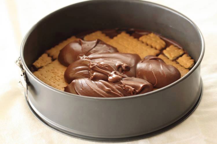 Placer une partie des Petit Beurre dans le fond, verser une couche fine de chocolat par-dessus, puis à nouveau des Petit Beurre et ainsi de suite jusqu’en haut du gâteau.